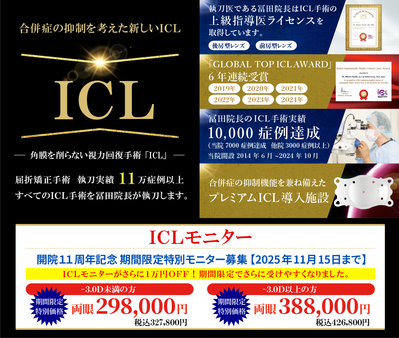 すべてICL(implantable contact lens) 手術の指導医ライセンスを持つ冨田院長が担当しております。