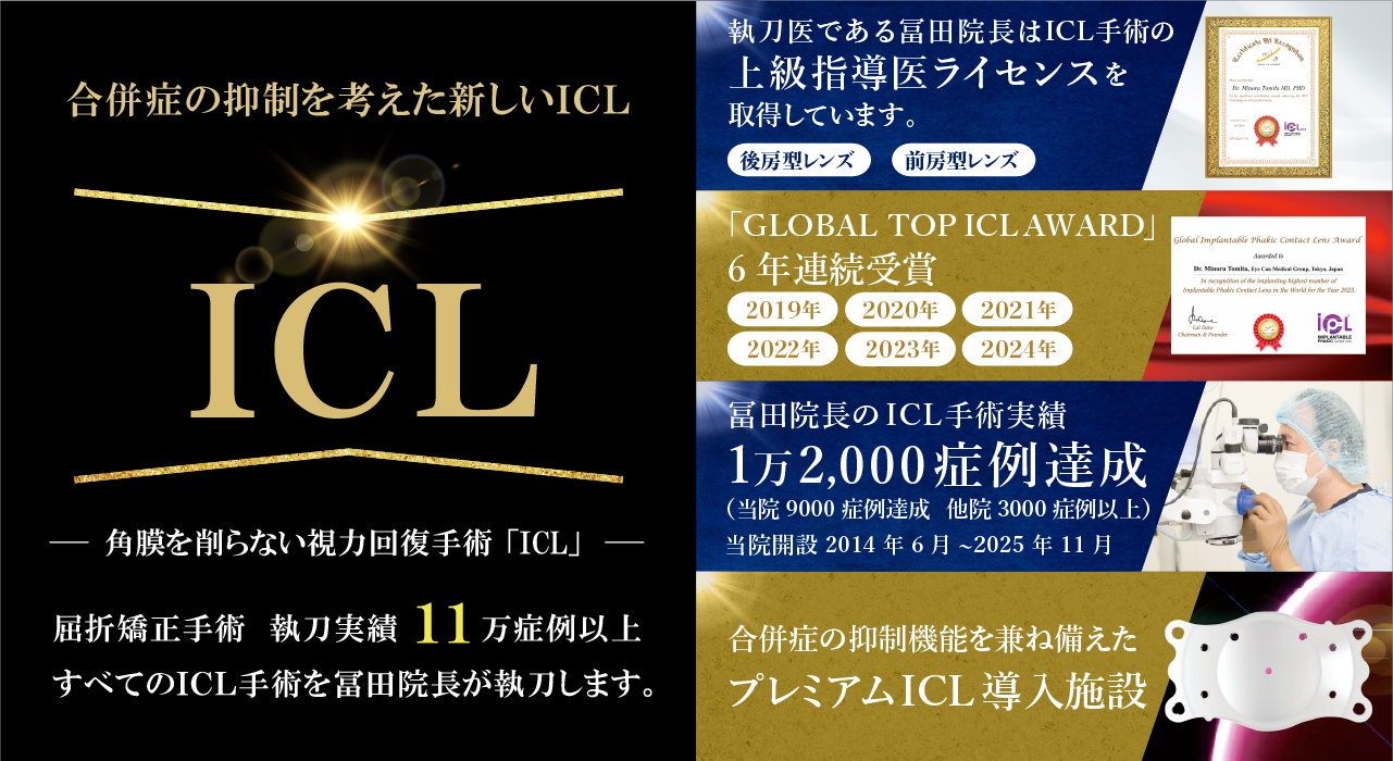 すべてICL(implantable contact lens) 手術の指導医ライセンスを持つ冨田院長が担当しております。